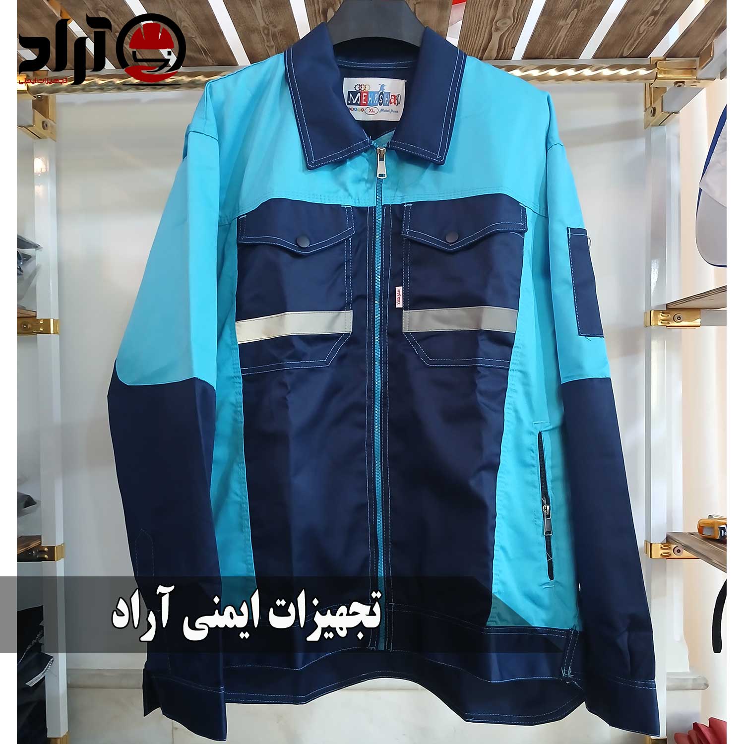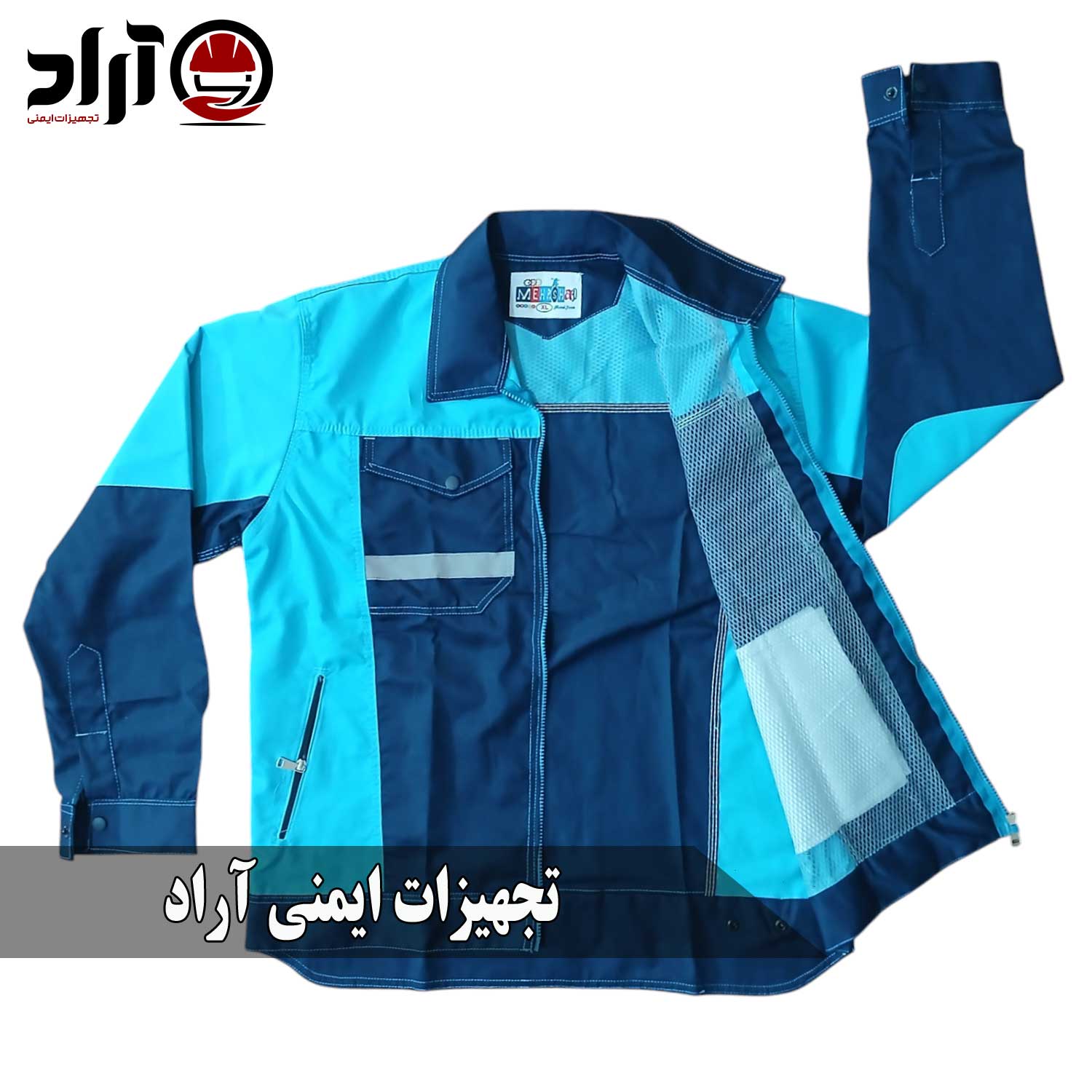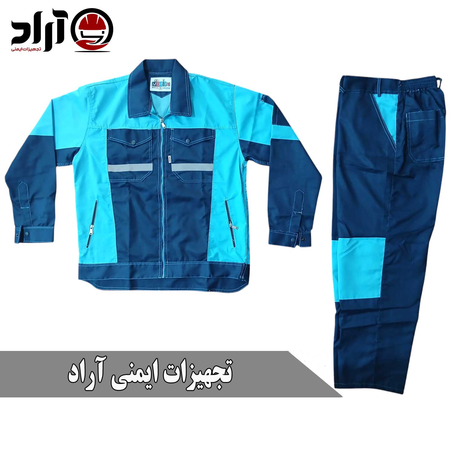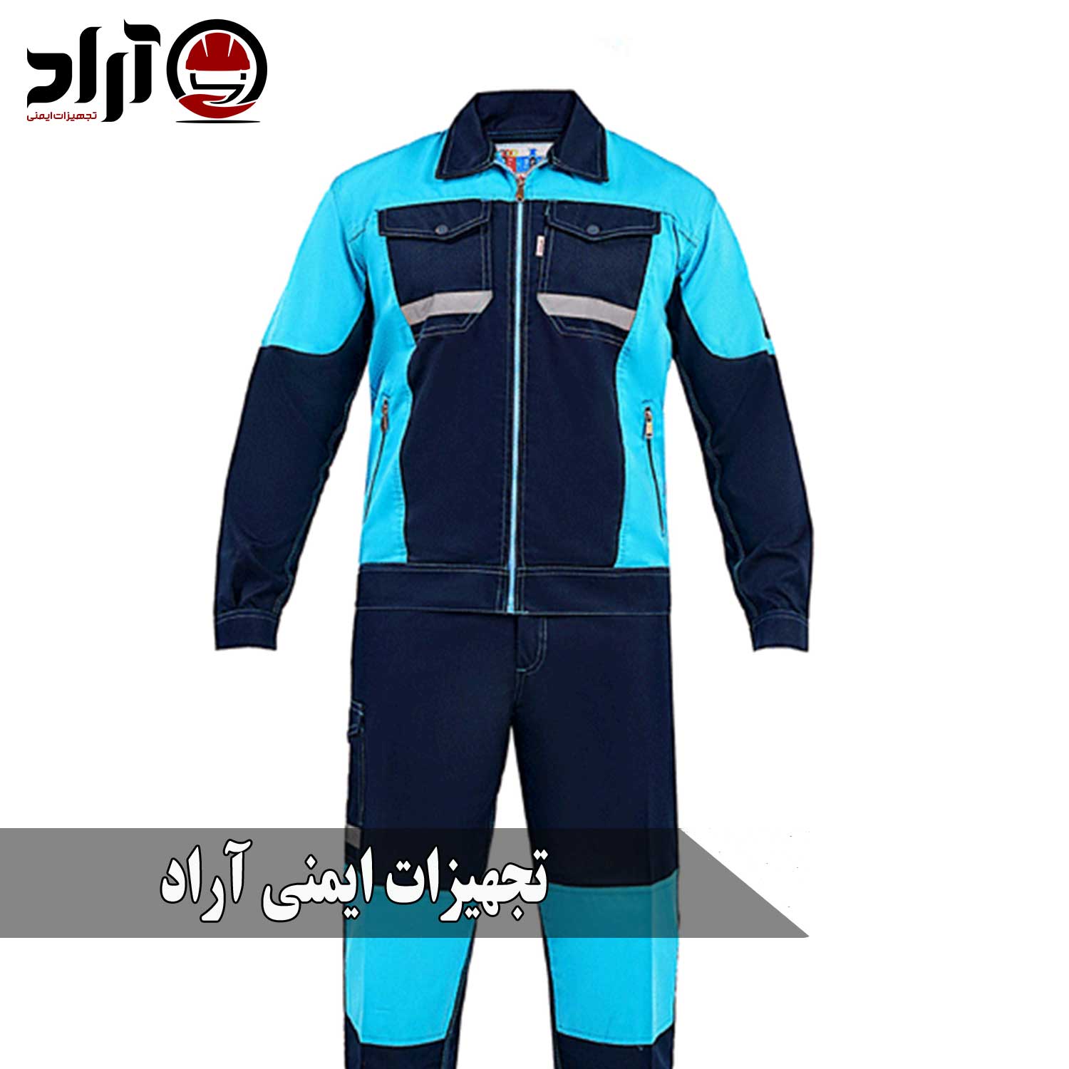 لباس کار آراد سرمه ای آبی آسمانی، ترکیبی از دوام، زیبایی و راحتی است که برای مشاغل صنعتی، خدماتی و کارگاهی طراحی شده است.