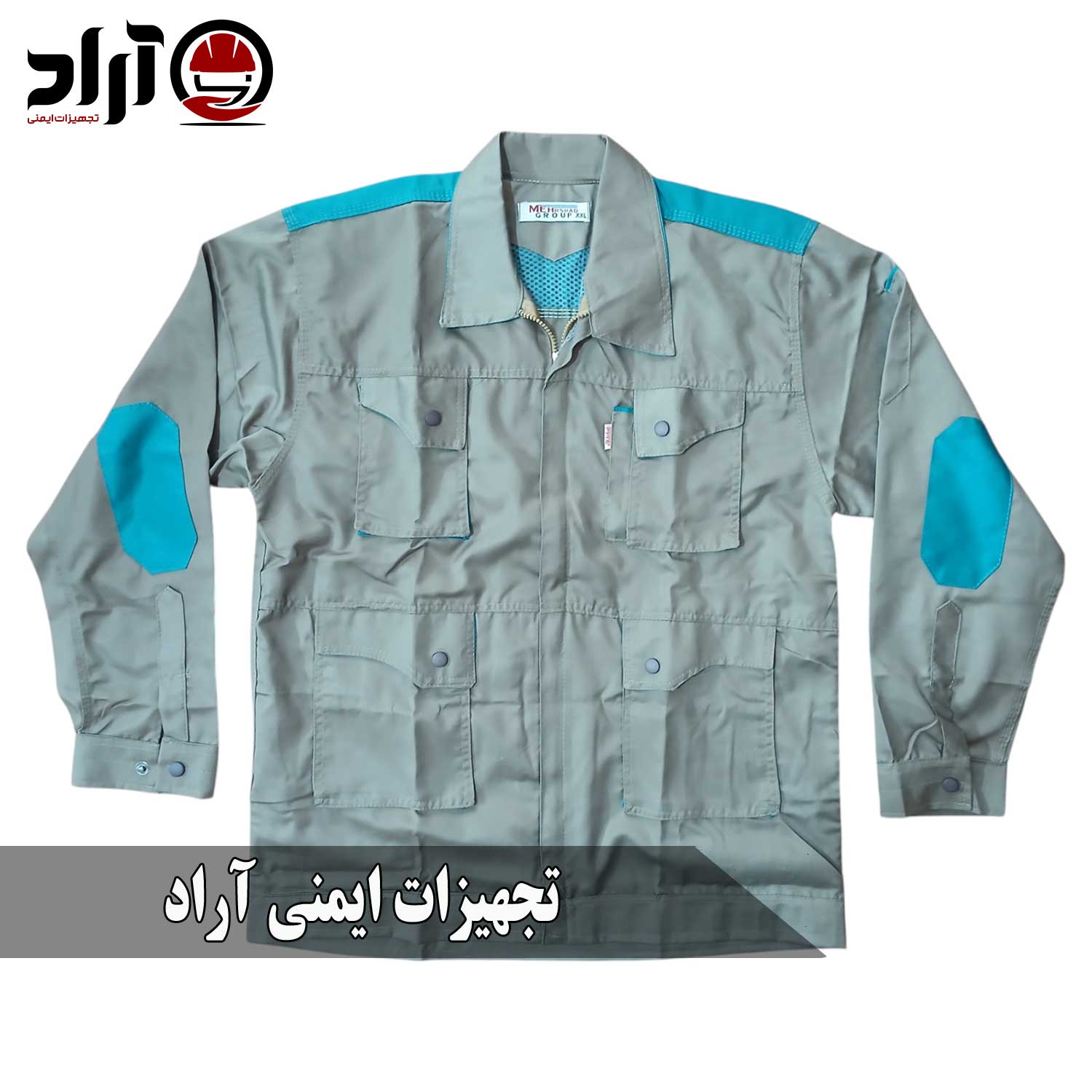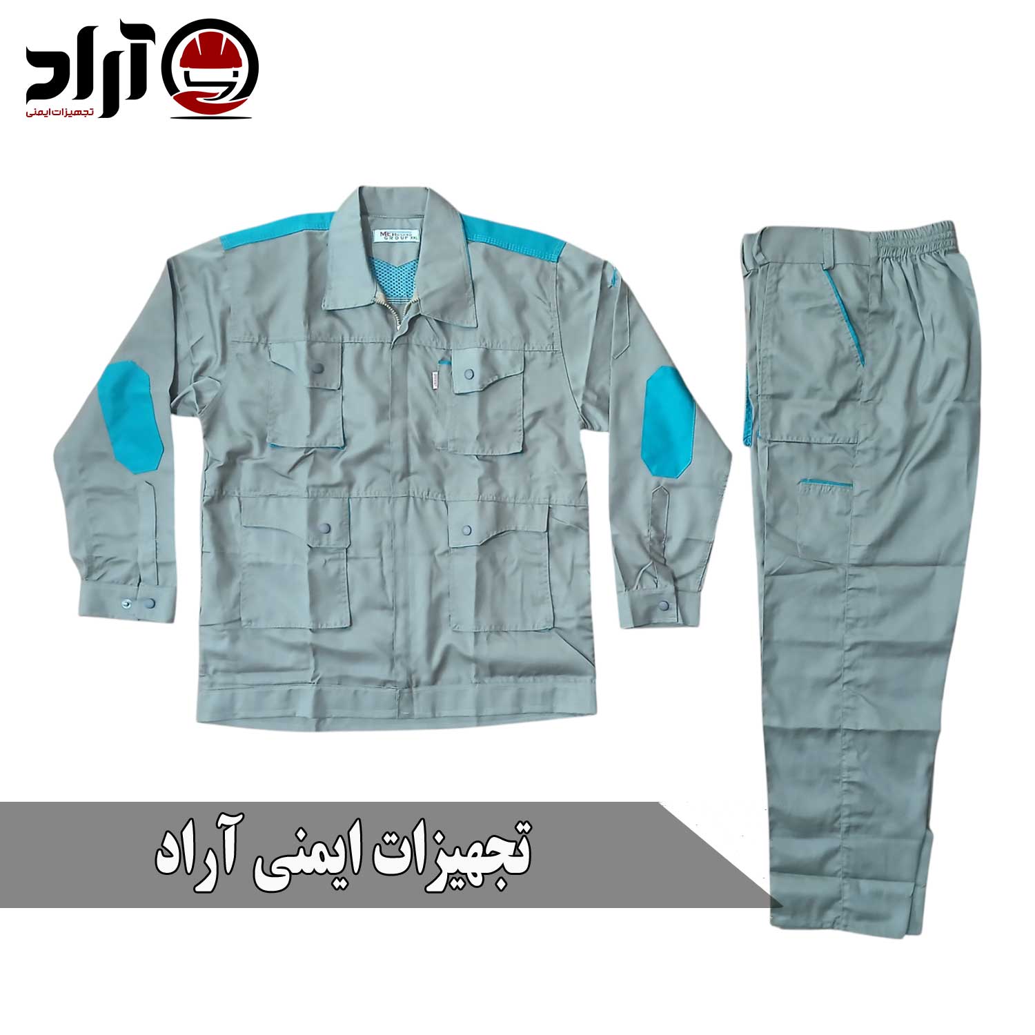 لباس کار ست ورک مهرشاد با رنگ جذاب شکلاتی و آبی فیروزه ای، ترکیبی از طراحی حرفه ای، کیفیت دوخت بالا و کارایی در محیط صنعتی و کارگاهی را ارائه می دهد.