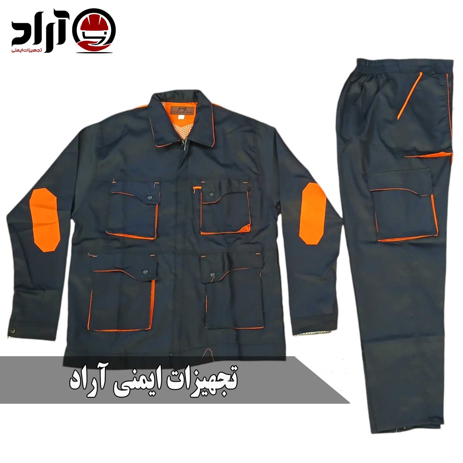 مشخصات لباس کار ست ورک سرمه ای نارنجی