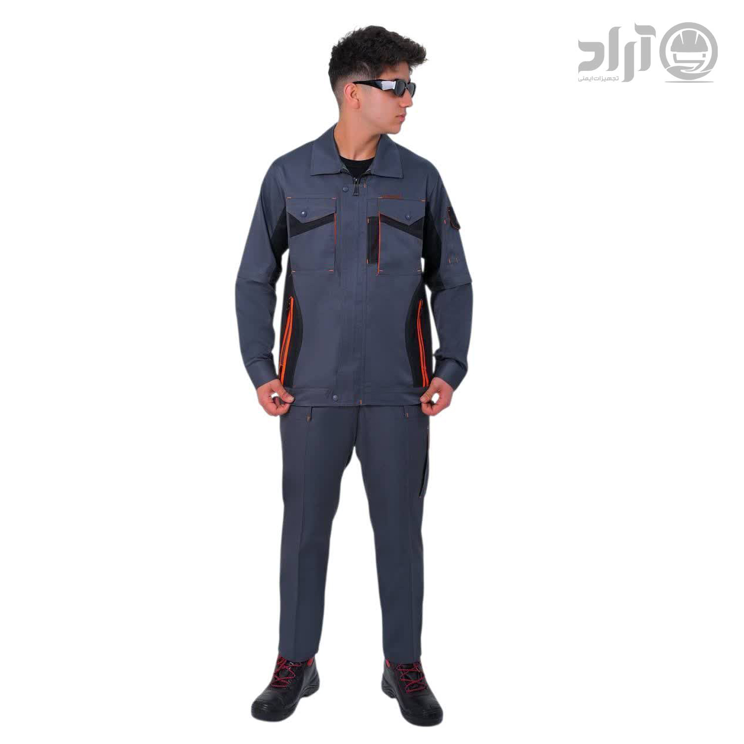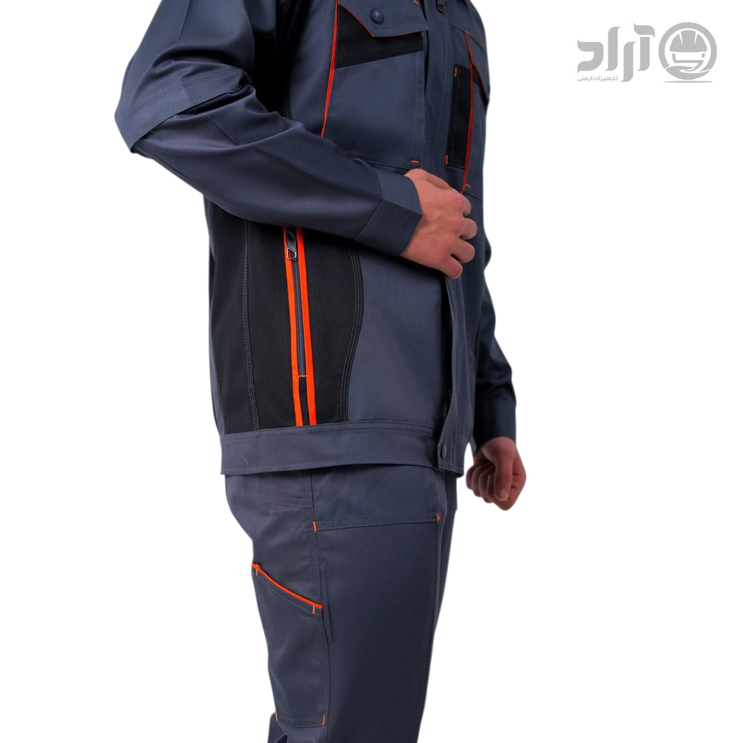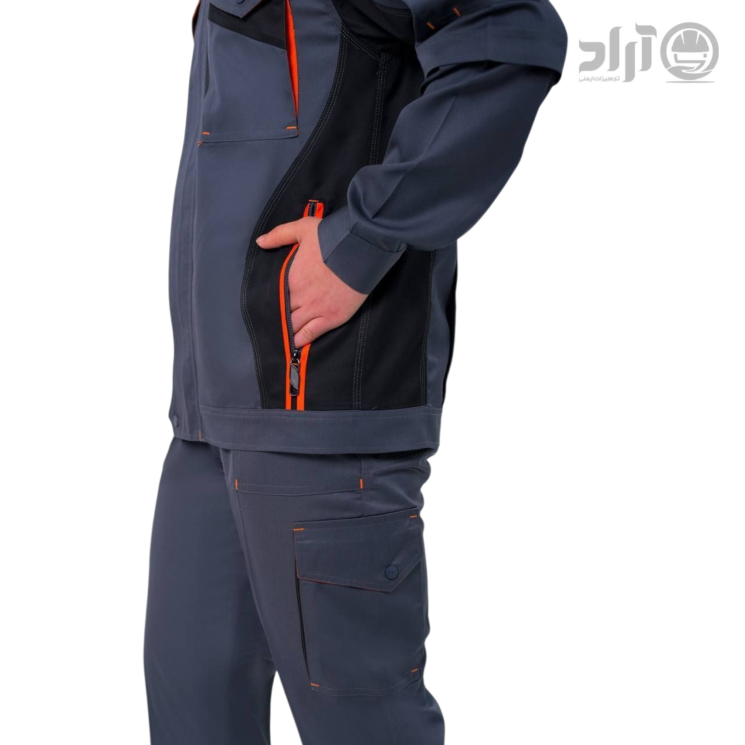 لباس کار سپهر طوسی نارنجی با طراحی مدرن و رنگ بندی جذاب، راحتی و دوام بالایی برای محیط های صنعتی و کارگاهی فراهم می کند.
